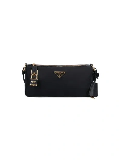 About The Brand: Classic, Sporty, Signature Style From Italy. Made In Italy Small Re-Nylon & Leather Shoulder Bag In Black Re-Nylon And Leather And Gold-Plated Hardware With Triangle Logo Accent And Padlock Charm Interior Design Details: Printed Fabric Lining, Zippered Pocket Measures 10.5In Wide X 5In High X 1.5In Deep Adjustable And Removable Shoulder Strap Drops 22In Zipper Closure Please Note: All Measurements Were Taken By Hand And Are Approximate; Slight Variations May Occur. Our Products Are 100% Genuine. In Some Cases We Purchase Merchandise From Trusted Independent Suppliers And Not Directly From The Brand Owner. In All Cases We Stand By The Authenticity Of Every Product Sold On Our Site. We Are Not An Authorized Dealer Of This Product.