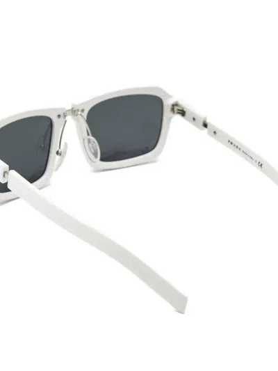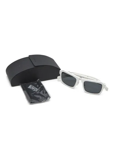 white acetate rectangular frame tinted lenses logo detail These glasses come with a protective case. Condition: GOOD. This previously owned and used item is in good condition with minimal signs of use. This may include fading of material or plating and scratches.