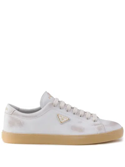 PRADA White Worn Effect Sneaker