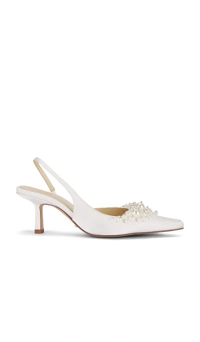 RAYE SERENA 多赛尔 – 象牙白 - Ivory. 尺码 9 (also – 10, 5.5, 6, 6.5, 7, 7.5, 8, 8.5, 9.5). 绸缎鞋面,橡胶鞋底. 中国制造. 脚踝处带扣开合设计. Leather lining. Pointed square toe with kitten heel. Pearl and bead-embellished upper. 鞋跟约 65 毫米/ 2.5 英寸. RAYE-WZ2662. RYSH1762 F24.