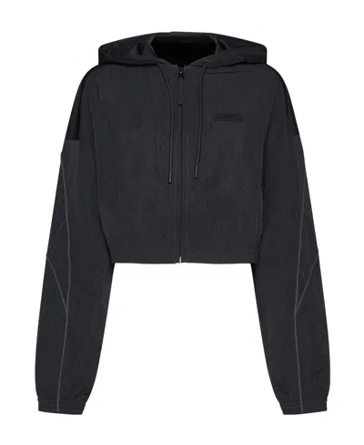 hooded cropped track jacket from Reebok Special Items featuring black, crinkled finish, logo patch at the chest, drawstring hood, drop shoulder, long sleeves, elasticated cuffs, front zip fastening, rear zip-fastening pocket, cropped and elasticated hem.WIDTH: WHITE/BLUESize Type: International*Import tax/duty will be calculated at checkout (If applicable)