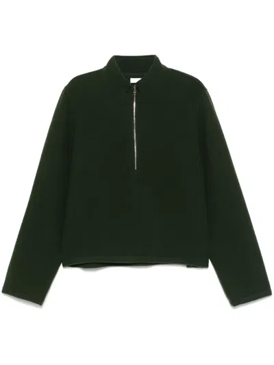 橄榄绿色 正面饰有短拉链 立领 长袖 平直下摆
