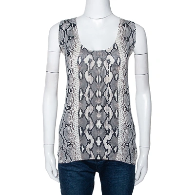 Pre-owned Grey Snake Printed Knit Scoop Neck Top M