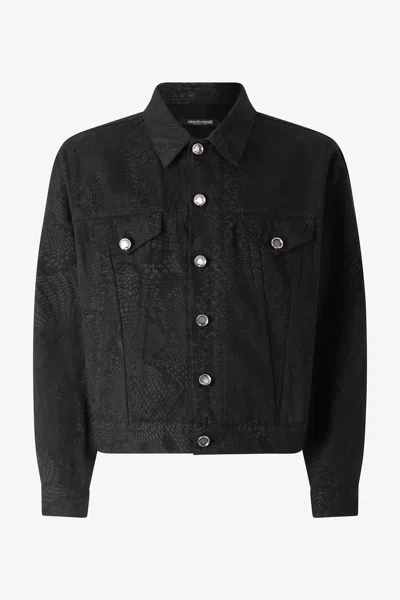 ROBERTO CAVALLI Python-print Denim Jacket In Black