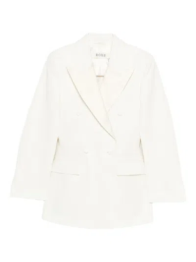 白色 双排扣 平驳领 两个正面盖袋 长袖