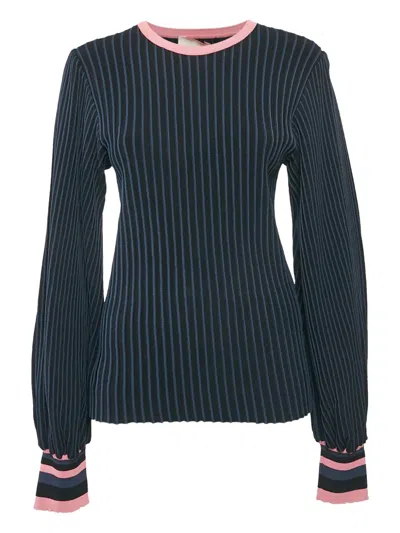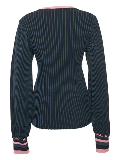 黑色 罗纹纹理 直条纹 长袖 领口和袖口饰有粉色边饰 状态:很好。这款典藏臻品商品状态很好,略有使用痕迹,可能存在于材料或电镀褪色及划痕。
