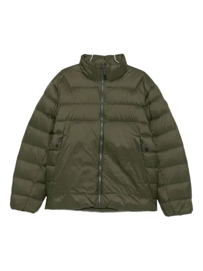 橄榄绿色 绗缝设计 正面饰有拉链 高领 侧置拉链口袋 长袖