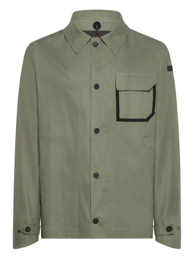 鼠尾草绿色 正面纽扣 贴袋 黑边饰 长袖 平直下摆
