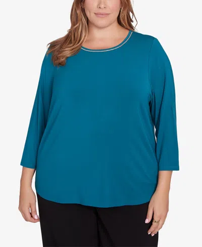 RUBY RD. Plus Size Micro Bead Chain Stretch Solid Top In Adriatic