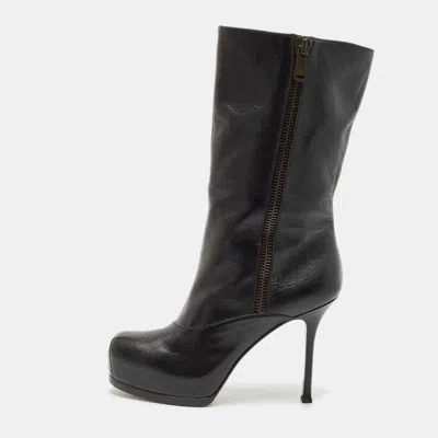 Pre-owned Black Leather Tribtoo Platform Ankle Boots Size 39