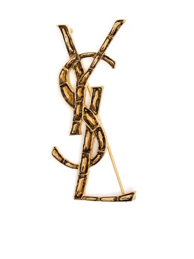SAINT LAURENT Ysl Logo-plaque Brooch In Gold