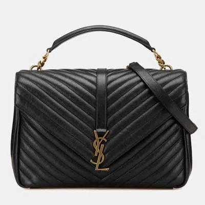 Pre-owned Ysl Monogram V-stitch Handbag Black Leather