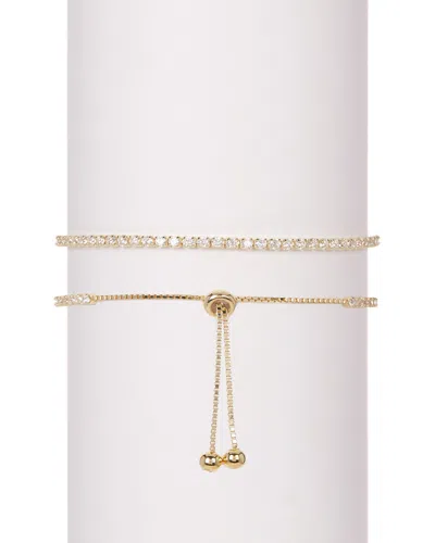 SAVVY CIE 18k Over Silver Cz Adjustable Bracelet In Gold