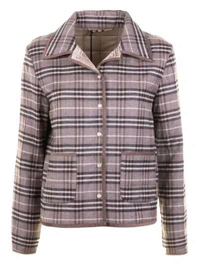 褐色 格纹图案 贴袋 钮扣 翻领领口