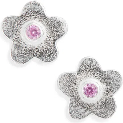 Shana Cave's masterful approach to metalwork shines through the richly textured sterling silver petals of these scaled-down flower stud earrings centered with glittering gems. Post back<br> Sterling silver/blue topaz or peridot or pink sapphire or ruby or smoky quartz Imported
