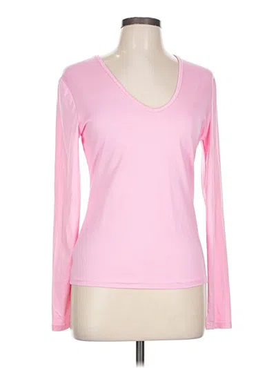 Shein Long Sleeve T Shirt, Size: Large. Item Details: Pink, Plunge Neckline, Long Sleeves, Women's Tops, Polyester/Elastane