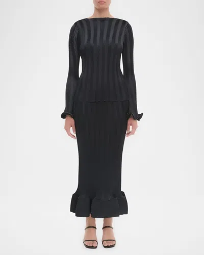 SIMKHAI Carys Textured Long-sleeve Top In Black