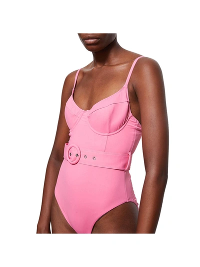 JONATHAN SIMKHAI Noa Belted One Piece in Pink. - size S (also in M, XS) JONATHAN SIMKHAI Noa Belted One Piece in Pink. - size S (also in M, XS) Self: 75% nylon 25% spandex Lining: 80% polyamide 20% spandex. Made in China. Hand wash. Lightly padded underwire cups. Adjustable shoulder straps. Detachable waist belt with buckle closure. JSKI-WX146. 123-9012-SW-SOLID. Established in 2010, the Jonathan Simkhai brand provides luxury ready-to-wear for the modern woman. The core aesthetic philosophy plays with the tension of feminine strength and sensuality; this is reflected in the employment of customized fabrics, romantic detailing, linear lines, and contoured silhouettes. Through designs that seek to embolden women with confidence and ease, the brand represents modern versatility.