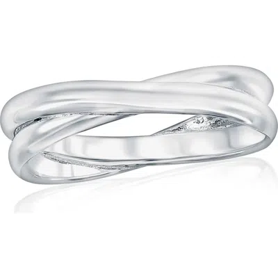 Crisscrossing bands bring visual intrigue to this elegant band ring crafted from icy sterling silver with a high-shine finish. Sterling silver Imported