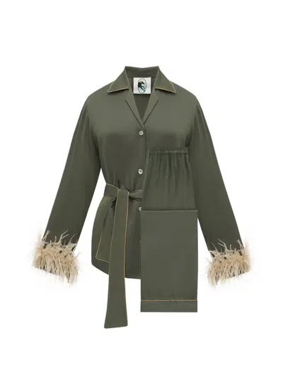 미스 캣 벨트 페더 트리밍 파자마 세트 In Green