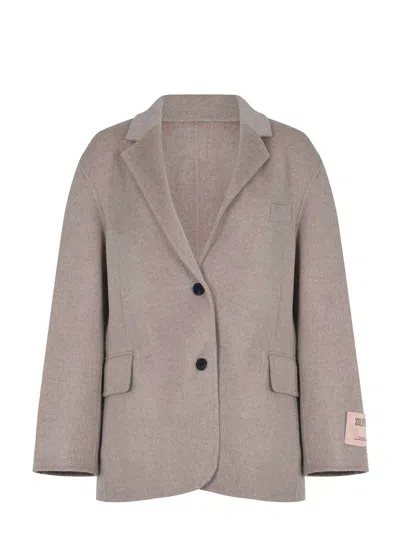Solotre jacket made of a wool and cashmere blend in beige color. Single-breasted. Classic lapel. Chest pocket. Front button closure. Side flap pockets. Long sleeves. Contrasting embroidered logo patch on the left sleeve. Buttoned cuffs.