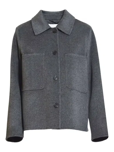 SOLOTRE Tailored Short Coat In Deep Anthracite With Clean Lines In Gray
