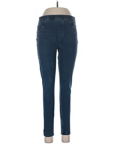 SPANX Jeggings, Size: Large. Item Details: Blue, Solid Pattern, Dark Wash, Skinny Leg, Cropped, High Rise, Women's Bottoms, Cotton/Polyester/Spandex