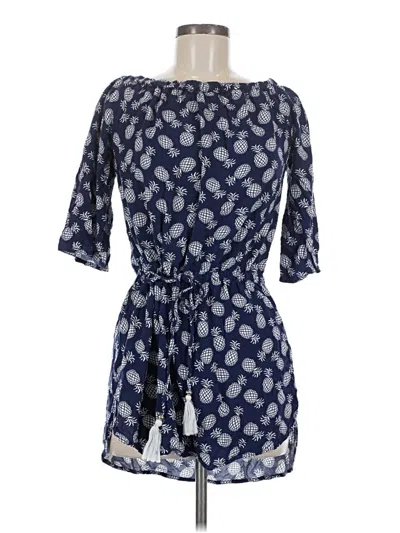 Spiaggia Dolce Casual Dress, Size: Medium. Item Details: Blue, Paisley Pattern, Boatneck, Short Length, Short Sleeve, Women's Dresses, 100% Rayon