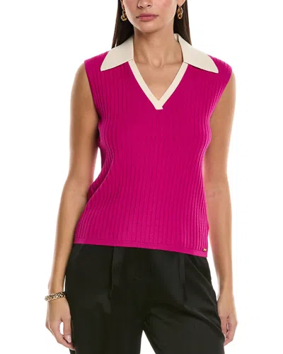 Elevate your wardrobe with the St. John Collared Shell - a luxurious knitwear piece that effortlessly combines elegance and style. This stunning shell in rosewood and ecru features a contrast spread collar and V-neck, adding a modern touch to a classic silhouette. Measuring approximately 23 inches from shoulder to hem, this top is designed to flatter and fit perfectly. Made from a blend of 83% viscose, 14% polyester, and 3% elastane, this top is both comfortable and chic. Perfect for any occasion, this St. John Collared Shell is a versatile piece that can be dressed up or down. Pair it with tailored trousers for a sophisticated look or wear it with jeans for a more casual vibe. This top is dry clean only and imported, making it a high-quality addition to your wardrobe. Embrace luxury and sophistication with the St. John Collared Shell.