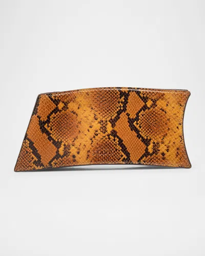 Designed in pythonembossed leather, this STAUD "Coco" shoulder bag features a chic architectural shape with curved and straight lines Detachable shoulder strap, 8.6" drop Can be worn as a clutch or shoulder bag Open top with magnetic closure Approx. 4.7"H x 11"W x 2.5"D Spot clean Imported