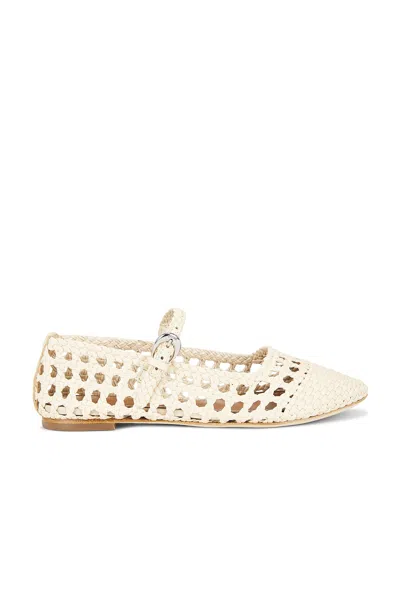 Staud Mary Jane Nell Flat in Cream - Cream. Size 39 (also in 36, 36.5, 37, 37.5, 38, 38.5, 39.5). Woven lamb leather upper with cow leather sole. Silver-tone buckle closure. Cushioned leather footbed and lining. Almond toe. STAD-WZ43. F25P3014BT. About the designer: After an impressive stint as a fashion stylist and director, Sarah Staudinger took a stab at venturing solo with her namesake brand STUAD. Co-founded with partner, George Augusto in 2015, this LA-cool girl collection of dresses, handbags and footwear insists upon the notion that fashion shouldn’t just empower women — it should be accessible, too.At heart of STAUD is design, think: scrupulous attention to detail, a natural opposition tothe typical, and a feminine aura that’s equal parts seductive and self-governing with the principle belief that fashion is a never-ending pursuit of style.