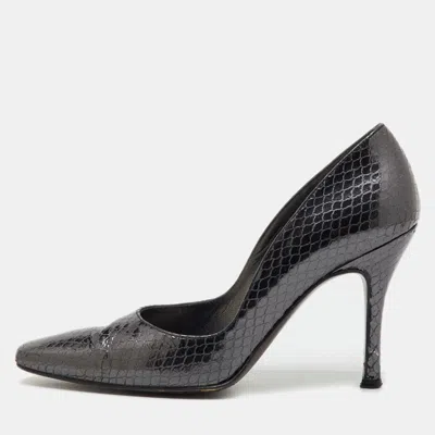 Pre-owned Black Python Embossed Leather Pumps Size 38