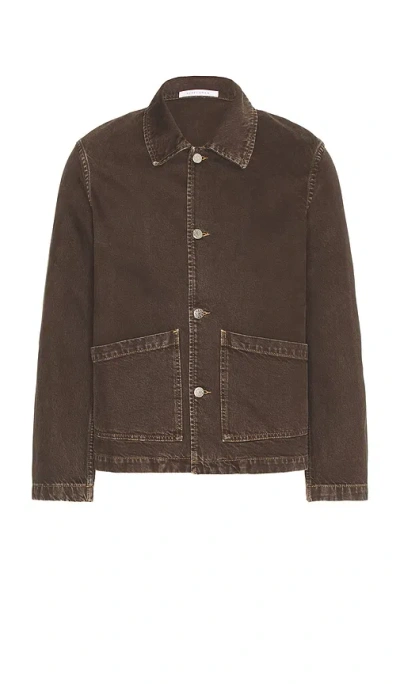 Sunflower 夹克 – 复古布朗. 尺码 XL/1X (also – L, M). 100% 有机棉花. 机洗. 正面纽扣闭合. 前身滑袋. 袖口纽扣设计. 中磅帆布面料. SFLO-MO6. 5135-1.