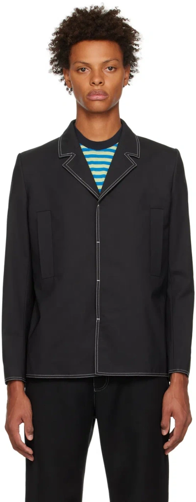 Plain-woven waterproof virgin wool blazer. Contrast stitching throughout. · Notch lapel · Concealed button closure · Padded shoulders · Welt pockets · Vented cuffs · Central vent at back hem · Full satin lining Supplier color: Dark blue