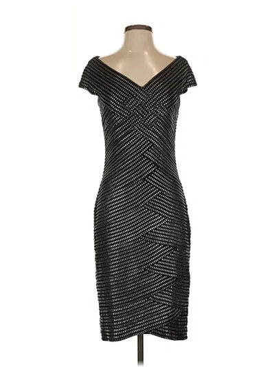 Tadashi Shoji Cocktail Dress, Size: 4. Item Details: Black, Chevron/Herringbone Pattern, Sheath, V-Neck, Knee Length, Short Sleeve, Glitter, Women's Dresses, 100% Polyester