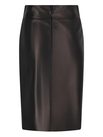 TAGLIATORE Leather Pencil Midi Skirt In Black