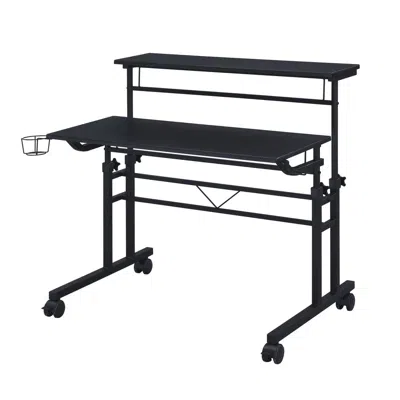 Rolling Writing Desk With Height Adjustable Desktop And Moveable Shelf, Black