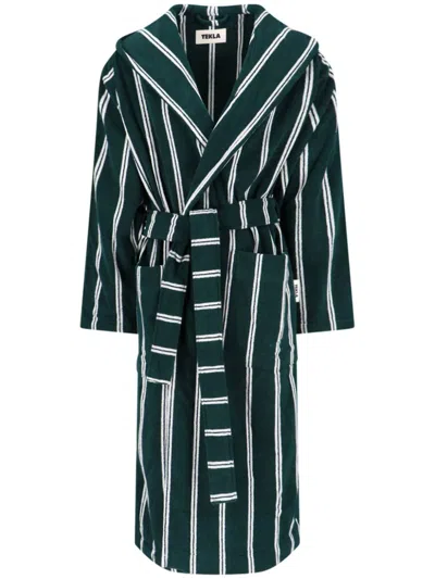TEKLA Striped Bath Robe In 绿色