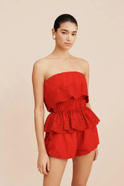 Vintage inspired embroidery Strapless style Gathers at neckline Gathered bodice with fixed waistband Peplum hem detail Material: 100% BCI certified cotton Made in India