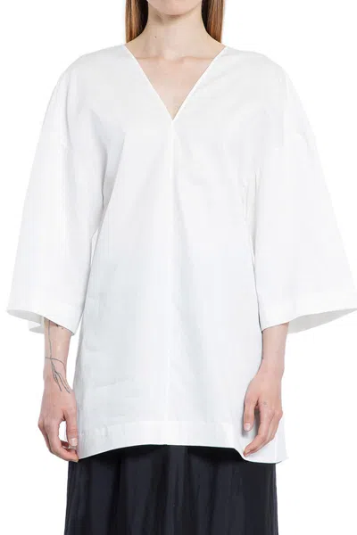 off-whitematte crisp cottonv-neckdropped shouldersshort sleevescut-out back back self-tie strapsdraped backelongated hemsilk lining