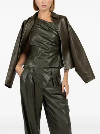 军绿色 单肩领 垂坠设计 皮质效果