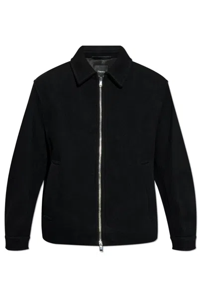 黑色 羊毛混纺 正面饰有拉链开合 经典领 两个侧置平袋 长袖 平直下摆