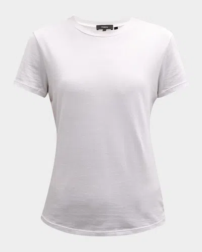 Theory tee doubleneedle topstitching along the sleeves and hem Crew neckline Short sleeves Relaxed fit Pullover style Pima cotton Made in Peru
