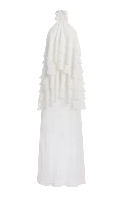 If you’re not already familiar; it’s time to put Merryn Kelly on your radar. The Australian talent has earned a legion of It girl fans with her feminine; edgy take on minimalism. Find it in her latest lineup that marries comfort with 24-hour appeal.The Gaia Dress is a refined statement in sheer chiffon; featuring a halter-neck and open back for a clean; elongated silhouette. Cascading tiers through the bodice add soft volume and fluidity; enhanced by the fabric’s subtle ripple texture that brings depth and dimension.