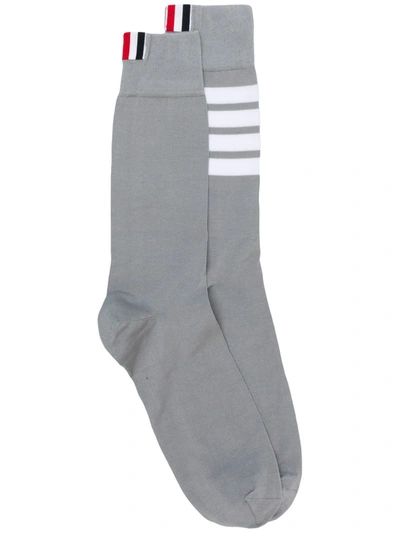 THOM BROWNE THOM BROWNE 4条纹饰中筒棉袜 - 灰色