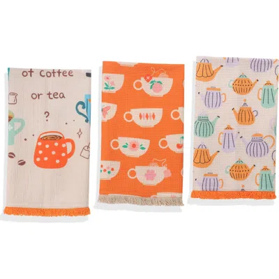 Color/Finish: Orange, Cream & Multi Design Details: Celebrate The Cozy Art Of The Café With This Designer Trio Of Coffee And Tea-Themed Kitchen Towels. Charmingly Crafted From 100% Premium Cotton, This High-End Set Pairs Playful Beverage Motifs With A Warm, Inviting Color Palette For A Look That’S As Stylish As It Is Functional. Set Includes: One Towel Featuring A Whimsical Of Coffee Or Tea Print With An Illustrated Mug And Coffee Bean Details. One Towel Adorned With A Cheerful Pattern Of Colorful Teacups On A Bright Orange Background. One Towel Showcasing A Variety Of Artistically Rendered Coffee And Teapots In A Neat, Linear Design. Each Towel Measures A Generous 17 X 27, Offering Excellent Absorbency And Softness. Whether You're Cleaning Up After A Coffee Break Or Prepping For Afternoon Tea, This Delightful Set Brings A Splash Of Café Culture Right To Your Home. Measures 17In X 27In Materials: 100% Cotton Waffle Imported Contents Of Set: 3 Kitchen Towels
