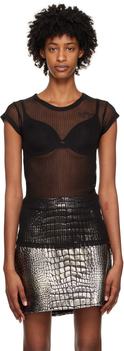 Rib Transparent Jersey Fitted T-shirt In Black