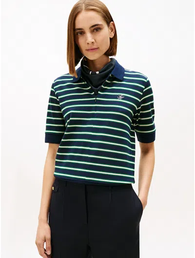 Tommy Hilfiger women's polo. Our polo is made from a pique weave known for its subtle textured finish that adds dimension and breathability. The lyocell-cotton stretch fabric has a soft, smooth hand feel to take you through the day in comfort. Part of our Tommy Jeans collection. Material: 65% Sustainable Lyocell, 32% Better Cotton Initiative, 3% Elastane.