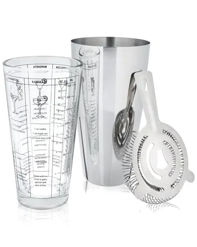 Color/Finish: Assorted Want To Make Cocktails At Home, But Not Sure Where To Start Become A Mixology Master With This 3 Piece Barware Set. The Mixing Glass And Shaker Tin Are The Perfect Combo For Shaken Or Mixed Cocktails. A Hawthorne Strainer Rounds Out The Trio, Providing The Perfect Pour Every Time. The Stainless Steel Tools Give A Professional Look To Your Home Bar While The Included Recipes Help You Mix Up Tasty Drinks. With Seven Iconic Cocktail Recipes Printed Right On The Shaker, Youll Be An Expert Home Bartender In No Time. The All-Around Print Features Ingredient Lists, Garnishes And Step By Step Directions So You Can Easily Whip Up Cocktails. Ounce And Milliliter Markings Ensure Accurate Bartending Every Time. Mixing Glass Includes Recipes For The Following Cocktails: #Name #Name #Name #Name #Name #Name #Name So Put On Your Bartender Apron And Practice Your Bottle Flips, Its Time To Show Off Your Skills. With This 3 Piece Barware Set, All Youll Need Are The Ingredients. Measures 3.5X6.5In 27Oz Capacity Stainless Steel (304), Silicone, Glass Imported Contents Of Set: 1X Shaker Tin, 1X Hawthorne Strainer, 1X Mixing Glass
