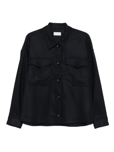 海军蓝色 长袖 钮扣 经典领 两个盖袋 平直下摆
